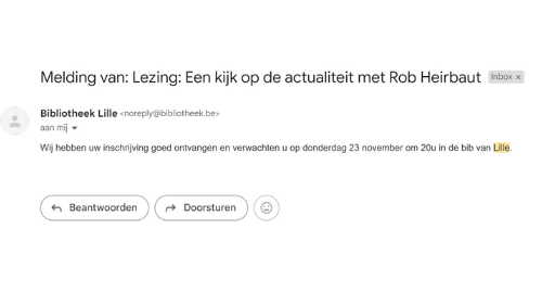 In het kader van de Europese week hadden de bibliotheken in Kasterlee en Lille een samenwerking opgestart omtrent het thema ‘Europa’. Dit ging gepaard met de nodige activiteiten voor klein en oud. Hier zaten dus ook een aantal lezingen bij. Ik woonde de lezing ‘Een kijk op de actualiteit met Rob Heirbaut’ bij. De journalist werd speciaal gevraagd om te komen spreken door de afgevaardigden van het Europese comité. Achteraf bekeken hadden zij die moeite niet moeten doen.